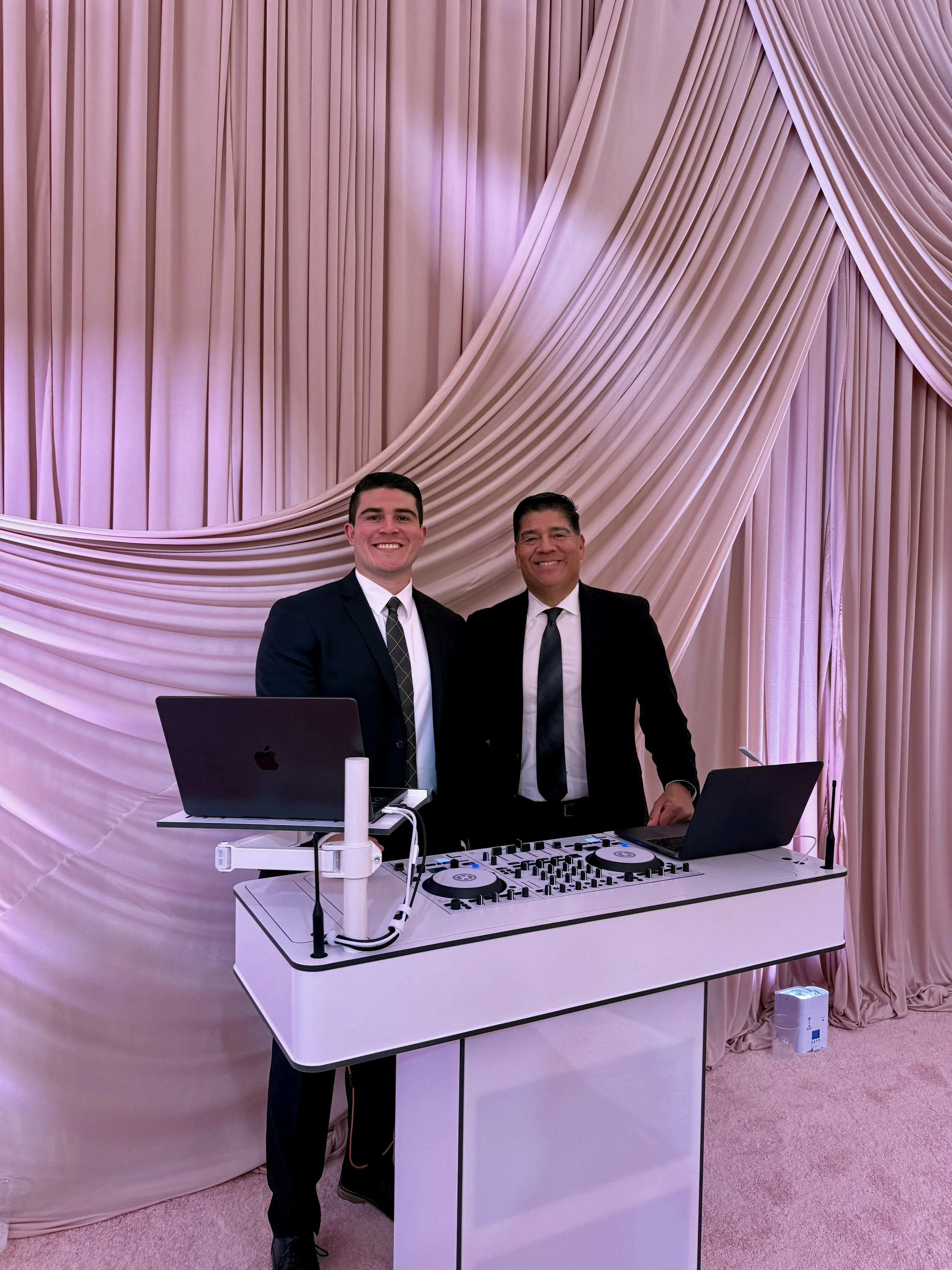 Get to know our DJs by visiting our DJs page. Our standard DJ/MC package includes a complete digital DJ system with powered speakers, wireless microphones, and a complete digital library of music. We have the ability to download any last minute song requests at your event instantly using our own hotspot. We will play your requested music, take requests from guests and read the crowd. Your DJ will be dressed in appropriate attire and will be a master of ceremonies to make all announcements.